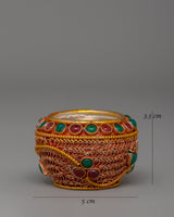 Copper Gold Plated with Turquoise & Coral Golpa Bowl | Tibetan Golpa Ritual Offering Bowl