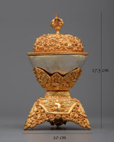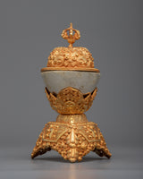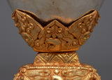 As part of a spiritual collection or as an addition to any altar, this Kapala Cup Set is perfect. Its exquisite design and craftsmanship enhance the ceremonial experience for practitioners by serving as a poignant reminder of the close relationship that exists between material artistry and spiritual practice.