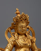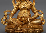 The Tibetan Buddhist deity Dzambhala, who is linked to riches and abundance, is represented divinely by the Copper Machine Made Dzambhala Statue. This machine-made statue is precisely crafted, with detailed copper body detailing that perfectly captures the essence of Dzambhala's holy characteristics. The statue is adorned with a brilliant 24k gold plating that exudes spiritual grace and luxury.