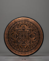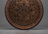 This mandala's intricate details were meticulously hand-carved by expert artisans, paying respect to centuries of Tibetan artistry. The copper sheet has a rich, warm tone complements the mandala's intricate patterns and symbolic features. Whether you want to create a peaceful meditation setting or add an individual cultural artifact to your wall décor, this mandala is both a spiritual tool and a beautiful work of art. Its energy and beauty will enhance every space it adorns.