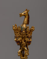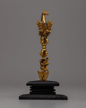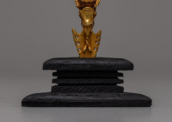 Discover the rich meaning and creativity of our Copper Phurba, a painstakingly created ritual tool that represents divine protection and might. This 19.5 cm tall, exquisitely gold-plated phurba has a wonderfully constructed hardwood base that adds to its exhibition and significance. It is made of copper.
