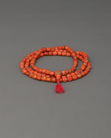 Mala beads are utilized in Buddhism as a sacred counting tool for prayers and mantra recitations, helping practitioners stay concentrated and build inner calm. This handcrafted Coral Mala has 108 beads, a number that is extremely symbolic in Buddhist teachings, representing the 108 earthly desires that must be vanquished to gain enlightenment. The process of reciting religious mantras while passing each bead between the fingers promotes concentration, devotion, and heightened awareness. These Coral Mala Beads, worn by monks, yogis, and meditation practitioners, represent wisdom, protection, and divine connection, making them an important and treasured spiritual accessory.
