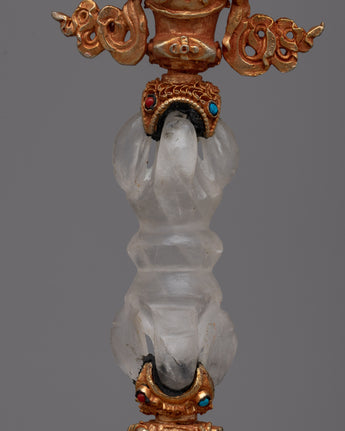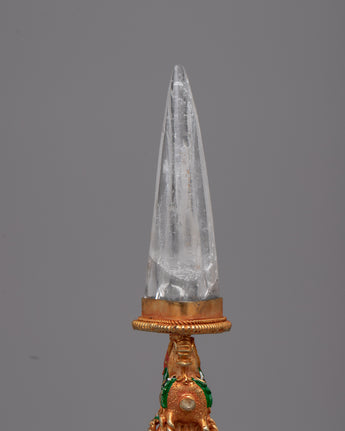 Perfect for collectors, spiritualists, and art lovers, the Crystal Phurba is a stunning decorative item in addition to a potent ceremonial instrument. It expresses the essence of Tibetan spiritual practices and artistic legacy, prompting reflection and reverence whether it is on display in a meditation area, sacred shrine, or as part of a carefully chosen collection.