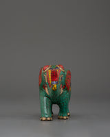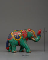 Elephants have long been revered in Hindu and Buddhist cultures, symbolizing wisdom, power, and spiritual progress. This elephant often connects with Lord Ganesha, the remover of obstacles, and represents divine blessings and abundance. The vibrant gemstone inlay adds to its visual appeal, associating it with traditional Nepali workmanship and significance.