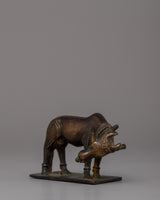 In Buddhist symbolism, the bull frequently denotes power, tenacity, and an unwavering will to conquer adversity. In Hinduism, the Bull is also known as "Nandi," who is Shiva's mount, or Vahana, and is also his most devoted worshiper. Nandi is a symbol of strength, faith, and devotion. The position of this bull statue, with its powerful stance and forward momentum, reminds us of our inner strength to tackle life's obstacles with courage and perseverance. The bull is necessary for hard work and survival, and its emblem promotes spiritual and personal power on the way to enlightenment.