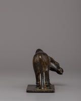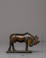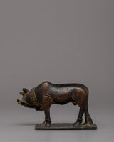 This Decorative Bull Statue measures 5cm in height, and 9cm in width, and weighs 0.316kg. Crafted from bronze with antique finishing, this statue has precise details that showcase the bull's natural qualities, making it an ideal addition to any collection or spiritual area. This bronze body has a deep, antique finish, making it a timeless addition to your home or Office.