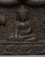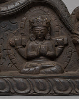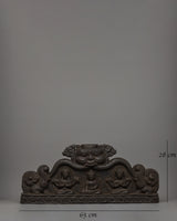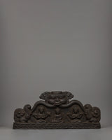 The wooden door frame was influenced by traditional temple architecture. This artwork, measuring 28cm high and 65cm wide, adds spiritual beauty and cultural richness to any wall, shrine, or altar setting. This wooden frame is more than just decor; it represents the sacred barrier between the physical and spiritual realms, making it an excellent addition to Vastu-aligned spaces and devotional altars.