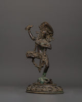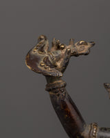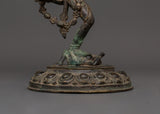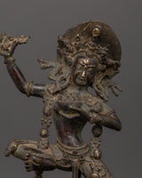 This meticulously made sculpture features classical imagery that exudes divine energy, confidence, and transformation. The ancient finish provides depth and authenticity, making it an ideal focal point for altars, temples, or personal meditation places. This statue, ideal for Vajrayana Buddhists or collectors of rare and spiritually charged antiques, is more than just decoration; it serves as a conduit for spiritual empowerment and devotion.