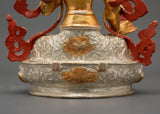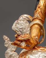This Dukar Buddhist Deity Statue represents the goddess of purity and compassion in Tibetan Buddhism. Standing 36 cm tall and 26 cm wide, the statue is meticulously crafted from copper, adorned with gold and silver plating, and features vibrant acrylic colors, giving it a striking appearance. Dukar, also known as Sitatapatra Tara, is revered for her ability to bestow compassion and eliminate obstacles in one's path. Her serene expression and graceful posture make this sculpture a perfect addition to any space dedicated to meditation, spiritual growth, or healing.