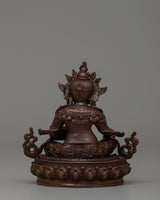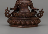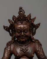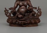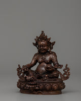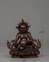 This Dzambala Buddhist wealth deity statue depicts the Tibetan Buddhist god of riches and success. This oxidized copper statue measures 9.5 cm in height and 9 cm in breadth, making it perfect for personal altars or meditation places. Dzambala is known for providing material prosperity and spiritual plenty, and this little sculpture embodies his immense power. Dzambhala is a revered god in the Buddhist tradition who is believed to shower material wealth and spiritual fulfillment upon people who worship him. So, this statue is ideal for meditation rooms, altars, or as a gift for those searching for wealth and good fortune.