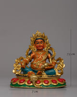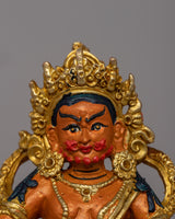Dzambhala is a protective deity associated with wealth and prosperity. Many forms and traditions are associated with this wealthy deity, but he is usually depicted as yellow in color and holding a mongoose in his left hand. This statue has accurate traditional iconography and fine details.