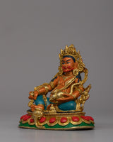 Dzambala, also known as Jambhala, is a powerful deity in Tibetan Buddhism who represents the energies of wealth, fortune, and generosity. His presence is thought to help practitioners overcome financial difficulties, achieve success, and cultivate prosperity in all aspects of life. The combination of gold plating and detailed paintwork heightens the spiritual significance of this handcrafted statue, making it a prized artifact for personal devotion or a thoughtful gift for spiritual seekers.