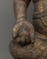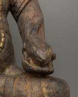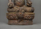 The statue’s intricate carvings and symbolism add to its artistic and spiritual value. Dzambhala is seated on a dragon, a mythical symbol of power and protection, reinforcing his role as a guardian of wealth and wisdom. His monk robe signifies his enlightened state, while the floral carvings on the lotus base represent the flourishing of wisdom and blessings. This stunning depiction of Dzambhala serves as both a sacred object and a work of art, making it a perfect addition to any shrine or altar dedicated to prosperity, protection, and spiritual growth.