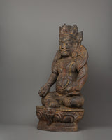 Hand-carved wooden Dzambhala Seated On A Lotus Base Statue for Prosperity
