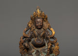 Handcrafted Dzambhala Tibetan Buddhist Wealth Deity Statue in Copper with Antique Finishing