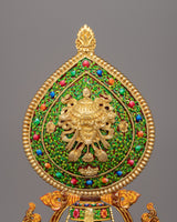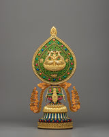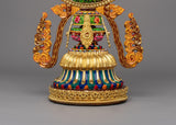 The Eight Auspicious Symbols set is a significant and visually appealing collection of spiritual artifacts crafted from copper, gold plating, and acrylic color, all meticulously hand-painted to perfection. This set features the Eight Auspicious Symbols deeply embedded in Tibetan Buddhism as symbols of good fortune and divine protection. These symbols are the Lotus, Wheel of Dharma, Conch Shell, Victory Banner, Golden Fish, Treasure Vase, Endless Knot, and Wheel of Life. Each symbol reminds people of Buddhism's core values and teachings.