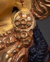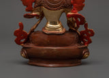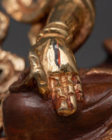 Every detail of this statue is carefully carved, highlighting White Tara's compassionate look and the symbolic lotus blossoms in her hands, which signify purity and enlightenment. The copper body has an ancient, ageless look, and the gold plating gives a touch of religious beauty. Whether put on a shrine or utilized in meditation, this Buddhist deity sculpture emits serene energy, providing a relaxing atmosphere in any space.
