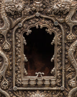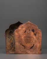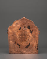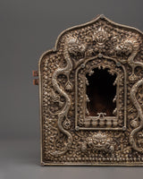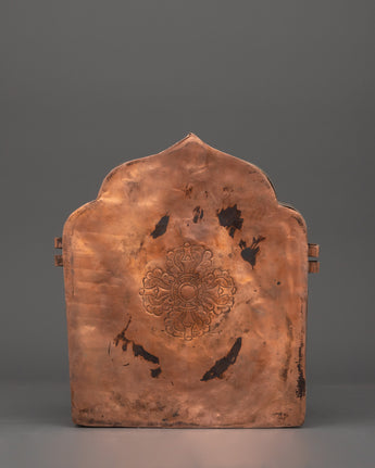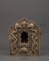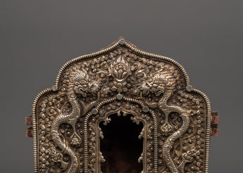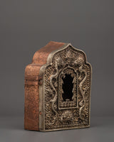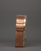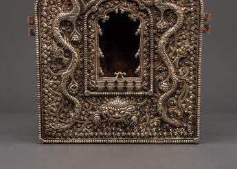 Consider pairing the Vajra with a Ghau Box to complete the spiritual set. The Handcrafted Ghau Box, measuring 24cm in height and 22.5cm in width, is composed of white metal with a copper body, combining perseverance and spiritual elegance. Ghau boxes are traditionally used to keep sacred relics, mantras, and protective amulets, as a receptacle for spiritual energy. This lovely box offers a sense of calm and security to your altar, heightening the spiritual atmosphere of your room. Whether employed for everyday rituals, as a sacred relic holder, or as a decorative element, this Ghau Box matches the Vajra well, creating a harmonious and intense atmosphere.