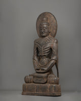 Fasting Buddha Wooden Statue | Traditional Himalayan Artwork