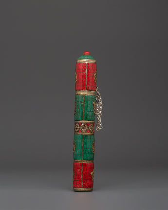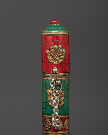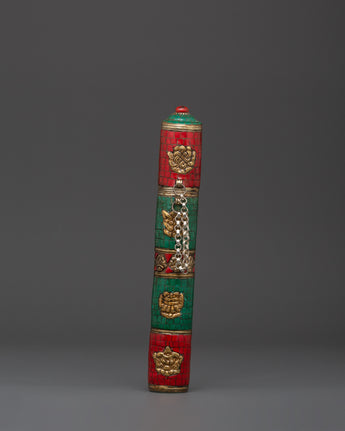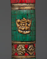 This handcrafted Feng Shui incense burner is not only a practical accessory but also a profound piece of spiritual décor. Brass and copper make an attractive finish, while the coral and turquoise inlays represent energy and spiritual progress. This incense holder, whether used in a meditation area, altar, or as part of your home decor, brings a touch of traditional Tibetan artistry to your space. Ideal for Feng Shui practitioners, meditation lovers, or anybody looking to create a serene environment, it also makes a meaningful present for individuals who value mindfulness and spiritual well-being.