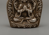 Handcrafted Silver Ghau Box with Seated Avalokiteshwor on a Lotus Throne