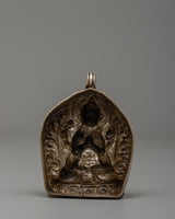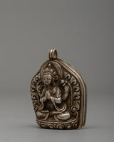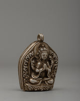 Avalokiteshwor, the Bodhisattva of Compassion, is depicted sitting gracefully on a lotus throne, representing purity, wisdom, and unbounded compassion. He holds his hands in the Anjali Mudra, a prayer and devotional gesture that represents togetherness, compassion, and universal awareness. The lotus seat underneath him symbolizes spiritual awakening, emphasizing his function as the protector of all sentient beings from suffering. Avalokiteshwor, a universal symbol of loving-kindness, is adored in Tibetan Buddhism for his unlimited mercy and promise to help all creatures on their path to enlightenment. This silver Ghau box locket functions as a potent spiritual amulet, providing divine protection, direction, and harmony.