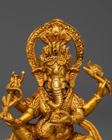 Four Armed Ganesh Statue | Golden Hindu God of Wisdom Idol
