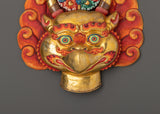 Garuda is known as a fierce defender against negativity, recognized for his ability to repel evil and protect spiritual practitioners. The flame-like aura surrounding the mask represents divine strength, while the detailed craftsmanship on the eyes and beak signifies intelligence and alertness. In Buddhist traditions, Garuda is acknowledged for removing illusion and ignorance; thus, this gold-plated Garuda wall hanging would make an auspicious addition to any home, temple, or meditation space.