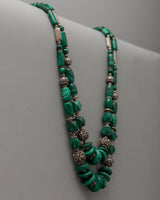 Gemstone and White Metal Combined Necklace | Multi-Layer Boho Style Necklace