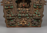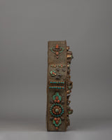 The creativity represents traditional Tibetan workmanship, with delicate carvings and stone inlays that add to the beautiful splendor. These boxes are frequently carried or placed on home altars to bring blessings, protection, and sympathetic energy. The presence of Chenrezig, surrounded by sacred symbols and the healing hues of turquoise and coral, helps to align one's practice with loving-kindness and internal tranquility. This Ghau Box is perfect for meditation rooms, temple installations, or as a spiritually significant gift. It combines beauty with profound spiritual intent.