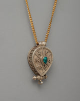 Our wonderful Ghau Box Mantra Locket, 4cm tall and 2.5cm wide, is handcrafted from 90% silver and features an original turquoise stone. This necklace, weighing only 0.008kg, is designed to channel positive energy and provide spiritual protection. This Ghau Box, worn as jewelry or as a sacred artifact in a personal shrine, is a strong amulet that blocks negativity, increases longevity, and attracts good fortune. It is a timeless piece based on Buddhist traditions that represents dedication and divine favors.