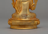 This gold-plated Tsongkhapa statue, measuring 10cm tall and 7cm wide, is a divine portrayal of the great Tibetan Buddhist guru Je Tsongkhapa. Crafted from copper and embellished with bright gold plating, this magnificent statue weighs 0.22kg and is suitable for spiritual altars, meditation rooms, and Buddhist practice. Tsongkhapa, the respected founder of the Gelug school of Tibetan Buddhism, personifies moral purity, knowledge, and compassionate leadership. He established an organized path to enlightenment and continues to inspire practitioners on their spiritual journeys.