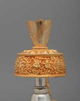 Meticulously handcrafted, the Bhumba features a copper body adorned with gold and silver plating, lending it a timeless and sacred appearance. Weighing 0.54 kg, it is designed for easy handling while maintaining stability during use. This ritual vase bridges the physical and spiritual realms, inviting prosperity, balance, and positive energy into one’s life. Whether used for traditional ceremonies or displayed as a symbol of spiritual devotion, the Handcrafted Bhumba Ritual Vase embodies the rich heritage and profound teachings of Tibetan Buddhism.