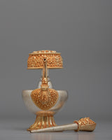 Gold & Silver Plated Sacred Vase for Spiritual Practices | Sacred Water Offering Artifact for Purification