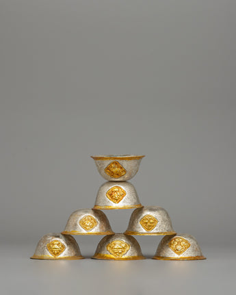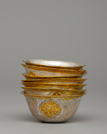 Gold & Silver-Plated Tibetan Offering Bowls | Ritual Bowls for Altar Décor