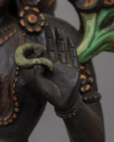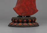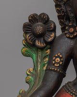 This magnificent Green Tara Female Goddess Statue is a breathtaking work of art, handmade from fine Yellow Cedar wood with careful attention to detail. This 34 cm tall statue depicts Green Tara, the Buddhist symbol of compassion, protection, and enlightenment. The detailed carvings, from the floral embellishments to the flowing clothing, demonstrate the artisan's talent and dedication. Each detail of the statue has been meticulously painted to provide vitality and life to the figure, resulting in a timeless addition to your spiritual or decorative environment.
