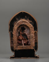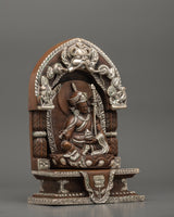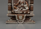 This statue's intricate throne contains delicate silver-plated embellishments highlighting traditional Tibetan creativity. Surrounded by flowery themes and celestial designs, the throne heightens the statue's overwhelming spiritual presence. The statue's serene and commanding presence in this sculpture serves as a reminder of the profound wisdom and compassion he shared. This handcrafted statue is ideal for meditation rooms, altars, or as a gift for individuals on their spiritual journey. It exudes a heavenly vibe that may enrich any holy environment.