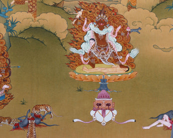 Guru Rinpoche is not only a fully enlightened Buddha, but he has also manifested as one of the greatest sages of the Vajrayana Buddhist world. He was born miraculously and served infinite beings for millenniums through the power of his wisdom and compassion. He manifested Zangdok Palri Pureland and remains there in the body of light.