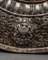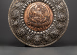 Guru Rinpoche Wall Hanging is a religious depiction of Padmasambhava, the respected teacher of Tibetan Buddhism. This stunning wall art, expertly handcrafted from iron and copper, represents Guru Rinpoche's knowledge, protection, and spiritual power, making it an ideal addition to your meditation room, shrine, or holy altar.