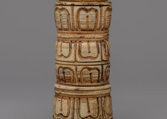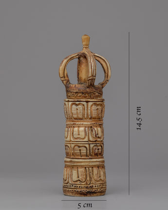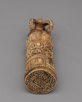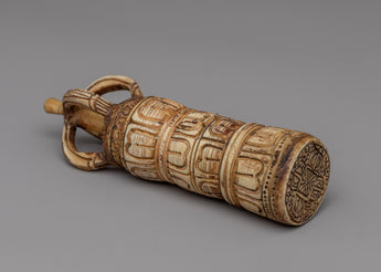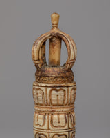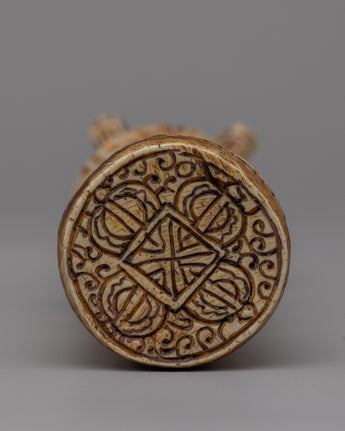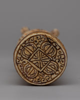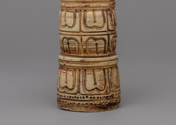 This Half Vajra Dorje is skillfully carved from ethically obtained bone. The talented artisans polished their expertise to create a remarkable sculpture that is both strong and beautiful. The half vajra design's complex embellishments demonstrate the skill and attention to detail that went into its construction. The bone material gives the piece a distinct texture and natural element, making it genuinely unique. This handcrafted Half Vajra Dorje, whether used for spiritual or ornamental purposes, is sure to enchant it with its exquisite design and rich meaning.