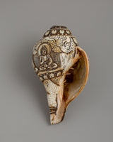 This ritual conch shell is expertly crafted and hand-carved by skilled artisans, ensuring that each and every detail symbolizes Tibetan spiritual craftsmanship. Its significance is enhanced by the sacred symbols and detailed engravings, which make it perfect for spiritual rites, Buddhist ceremonies, and sound healing. With its powerful vibrations and divine advantages, this sacred Shankha can be a meditation tool or a decorative spiritual artifact.