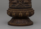 This hand-carved copper Stupa, with its gorgeous oxidized antique finish, honors the journey to enlightenment. The stupa, which dates back to ancient Buddhist traditions, signifies the Buddha's meditation posture as well as the path to spiritual awakening. Every aspect of the stupa is loaded with significant meaning, from the base representing crossed legs in meditation to the top representing enlightened understanding.