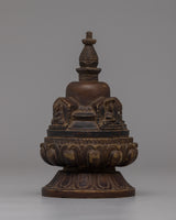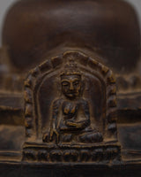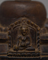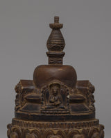 Hand-Carved Copper Stupa with Antique Finish | Buddhist Shrine Decor