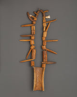 Each component of this sculpture is meticulously hand-carved, demonstrating both traditional design aesthetics and spiritual meaning. The responsibly procured buffalo bone exemplifies environmental stewardship and careful craftsmanship. This mala is more than simply a necklace; it's a cultural treasure, a meditation tool, and a powerful assertion of spiritual identity. It is suitable for shamans, practitioners, and collectors of tribal and ceremonial art.