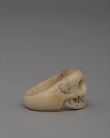 Hand-Carved Skull Buffalo Bone Ring | Traditional Tibetan Artisan Statement Band
