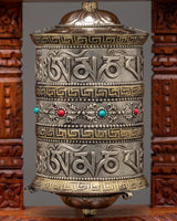 This Tibetan prayer wheel is both functional and visually appealing. The mantras inscribed on the wheel produce positive energy, which enhances your meditation or prayer routines. This prayer wheel is perfect as a thoughtful spiritual gift or a meaningful centerpiece for your home, adding a touch of ancient Himalayan heritage to your space.
