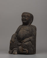 Hand-Carved Wooden Laughing Buddha | Wood Buddha Figurine
