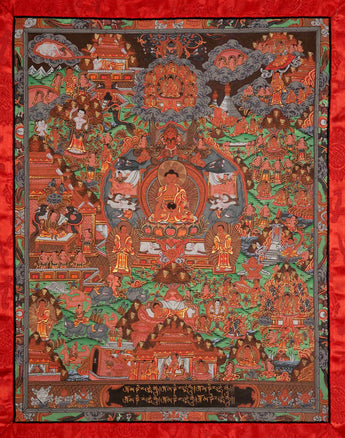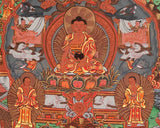 Hand-Painted Buddha Life Story Thangka with Brocade Frame | Tibetan Thangka Painting |