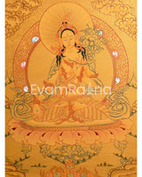 Hand-Painted Gold Chengrezig and White Tara Thangka | Tibetan Buddhism Arts
