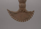 A Vajra Top-like handle is an intricately designed handle that provides a grip for the practitioner during use. In Buddhism, the Kartika Knife is associated with wrathful deities and represents the destruction of opposing forces, delusions, and impurities. Its symbolic uses include offerings, protection rituals, and the removal of any spiritual impediments to enlightenment.